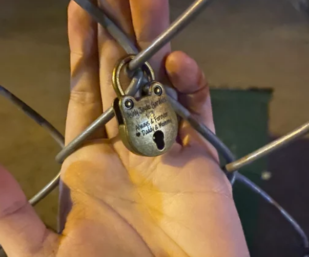The locks come in either a heart shaped design or the traditional antique lock commonly referred to as the "Bear's Head" lock.